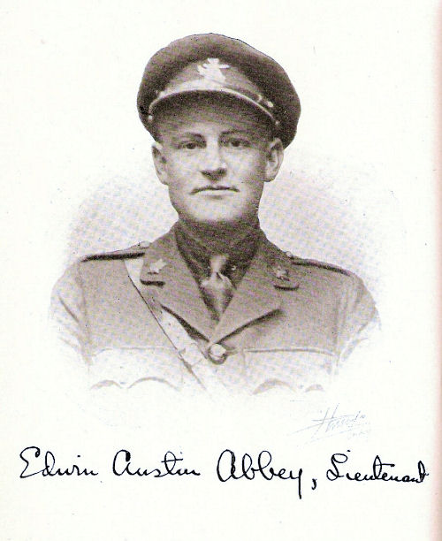 Lt. Edwin Austin Abbey was born in September, 1888, in Kilmalcolm, Scotland. The Abbey family latterly moved to Pennsylvania, USA, where Edwin trained as a Civil Engineer.